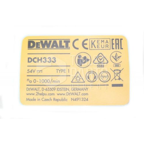 DeWalt Rating Label Rating Plate for DCH333 Rotary Hammer Drill